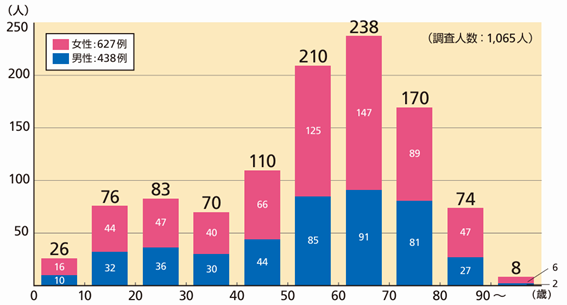 図1は帯状疱疹の発症年齢です。50歳を過ぎる頃から発症が増え、50代、60代、70代での発症が目立ちますが、20代~40代でも一定の発症が見られます。